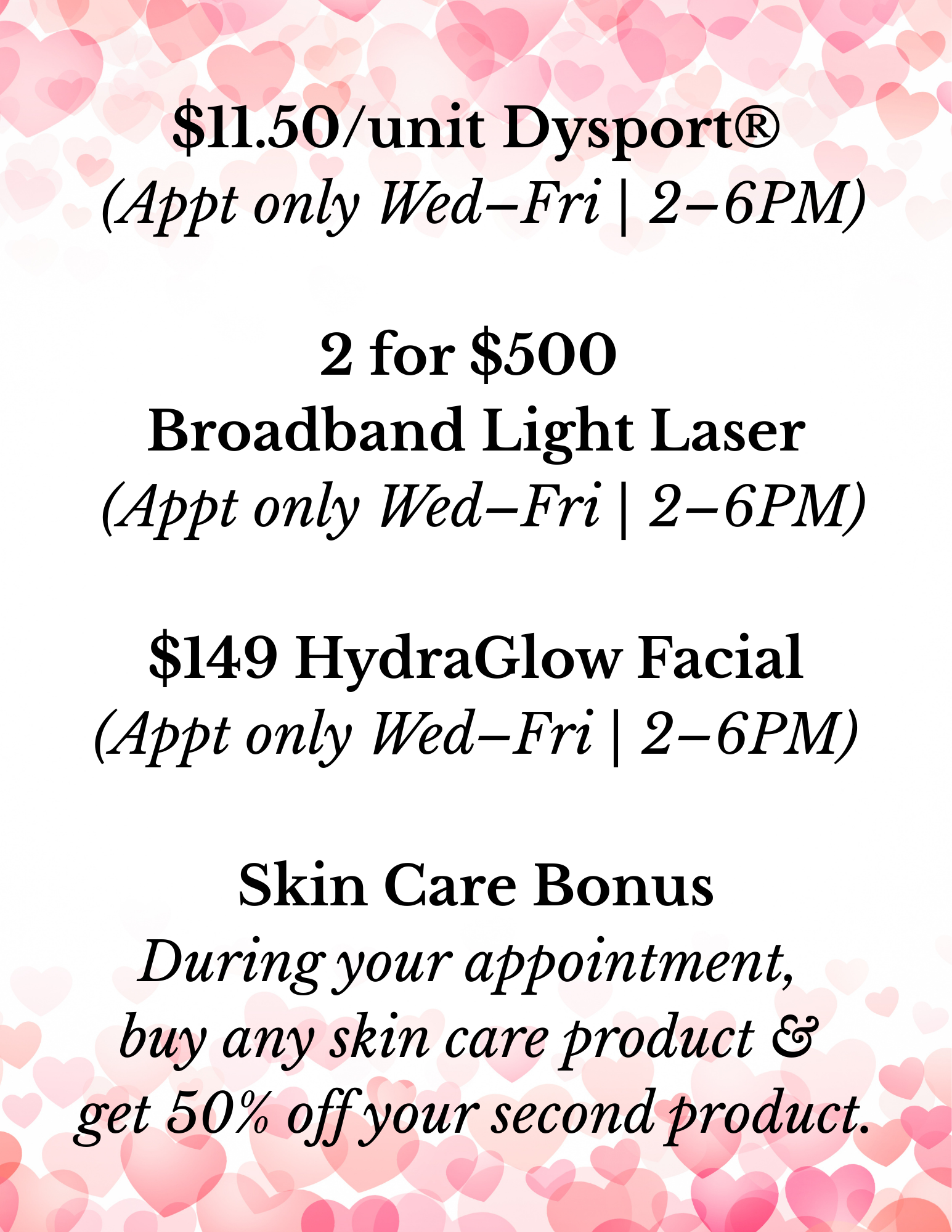 Valid only for appointments occurring Wednesday-Friday from 2-6pm.